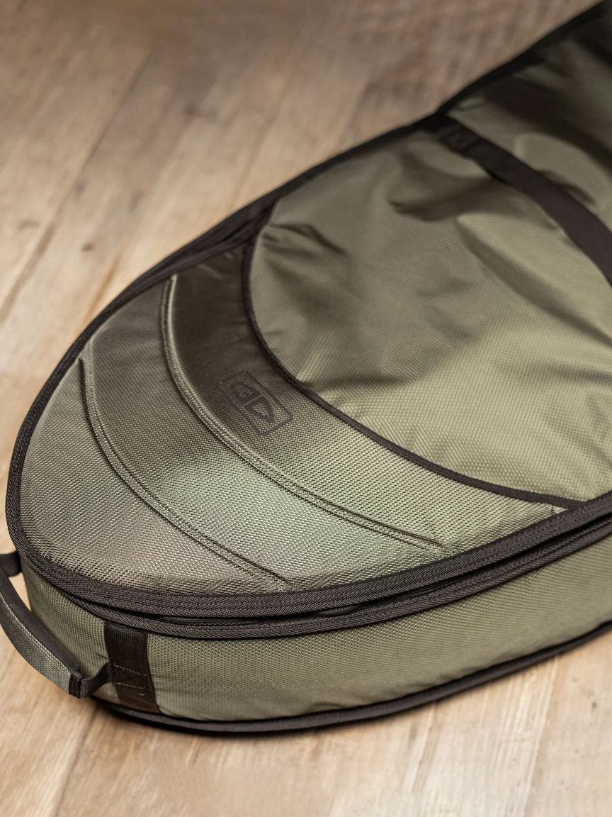 A wider fitting surfboard cover designed for carrying 2 fish and or short boards. This travel cover has shock-absorbing and anti impact foam, external compression straps and 20mm of protection on the rail, nose and tail. Ideal for domestic or international surf trips.