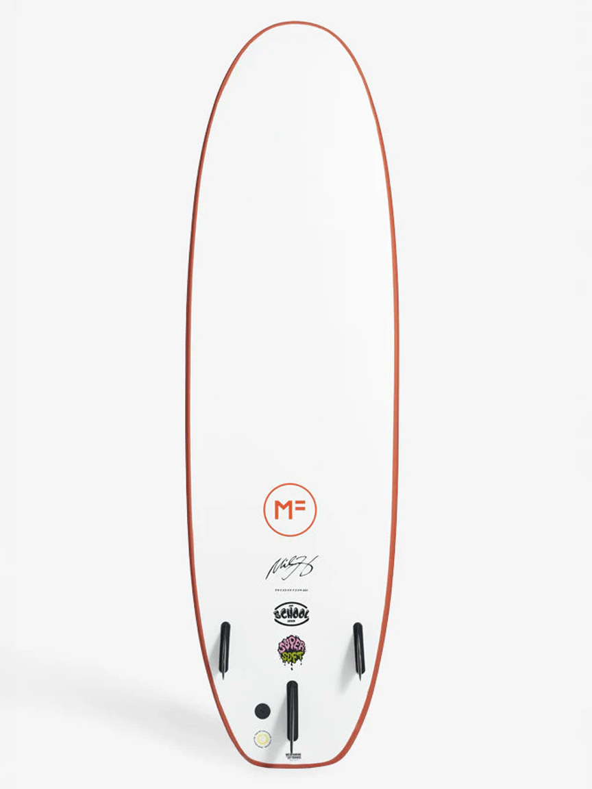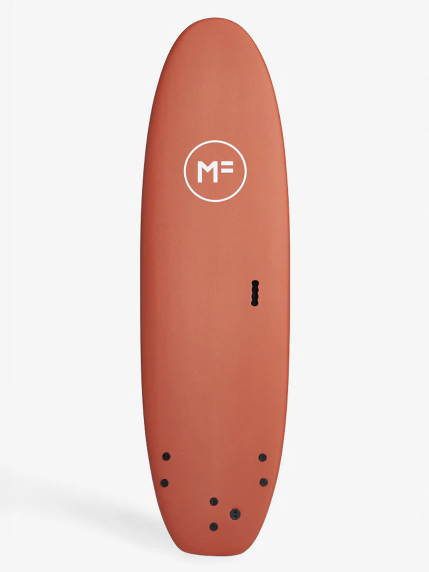 Rocker: Med Fin System: Multi Box Fin Supplied: MF Soft Thruster Bottom Contours: Single To Double Outline: Wide Round Tail Construction: Heat Lamination, Dual Stringer Colour: RUST