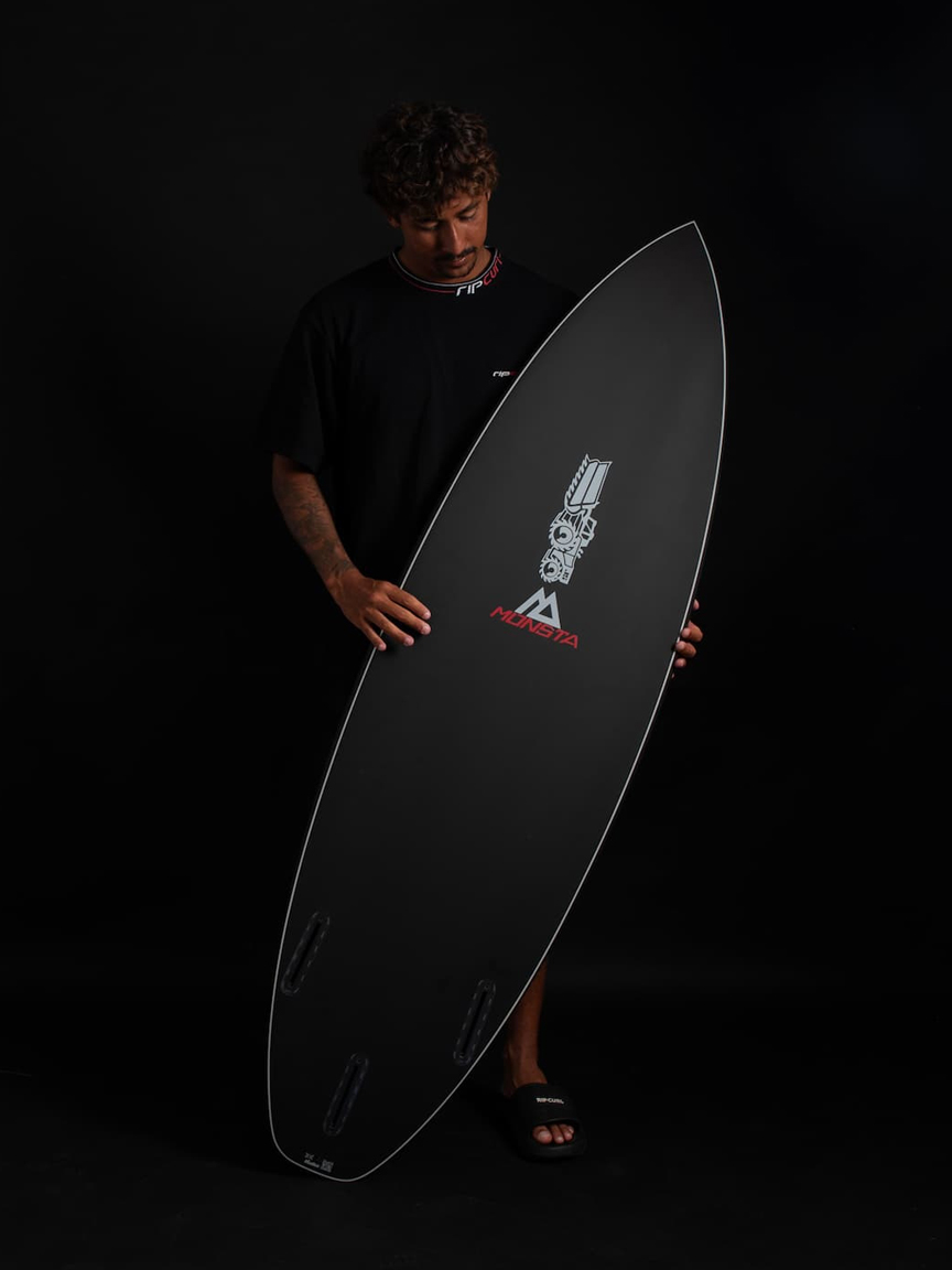 Another update is the new Monsta’s dimensions and thickness in the centre, which has now shifted to cater for the incredible power-to-weight ratio of our current team riders. Surfers from Jack Robinson to Kauli Vaast push hard enough at their size to ride more volume than previous generations. This means more foam in the centre of the board for paddle power, momentum, and power through turns.